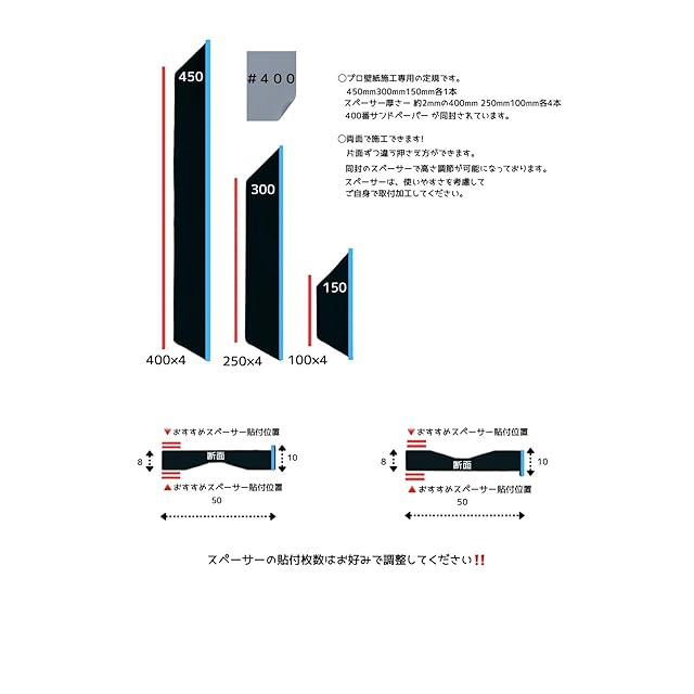 450mm 300mm 150mm の3本セット スペーサー各4本