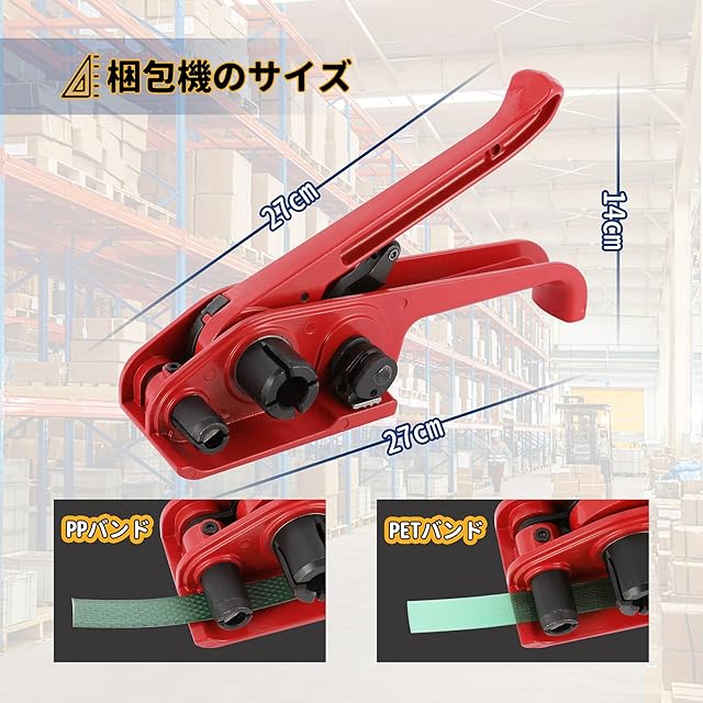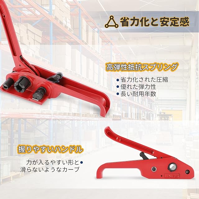 【梱包ニーズを満たす】内容物:引締機+封緘器+シール金具。適合バンド:PPバンド、PETバンド。適合バンド幅:13~19mm。バンド厚み:0.4~0.9mm。引締機重量:1.5kg。異なるパッケージングニーズを満たすことができます。