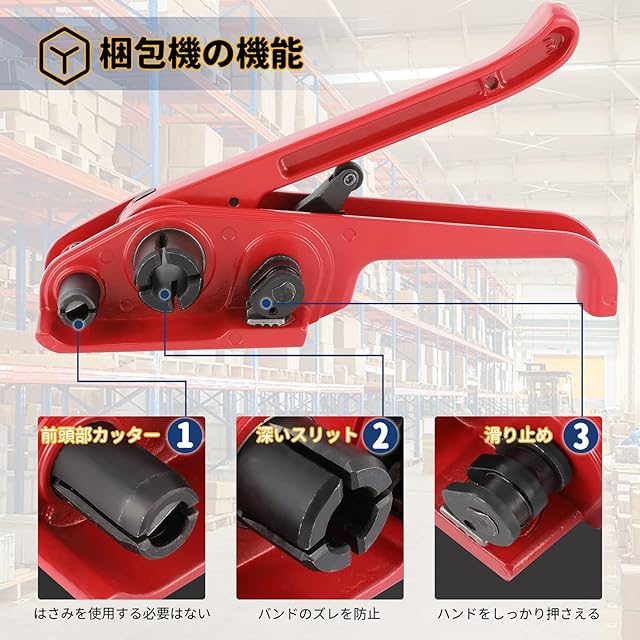 【高品質】梱包機ではバンドカッターが搭載されているので、はさみを使用する必要はなく、作業効率がグッと上がります。深いスリットと滑り止めの部品により、バンドがずれることはありません。 封緘器は高品質の鋼を使って作られ、噛み合わせが強く、歯ぎしりが長持ちします。