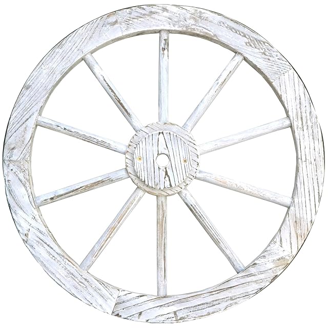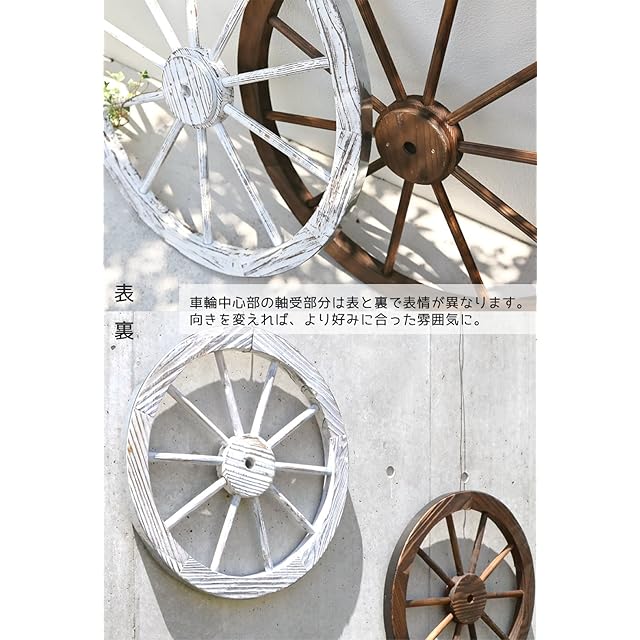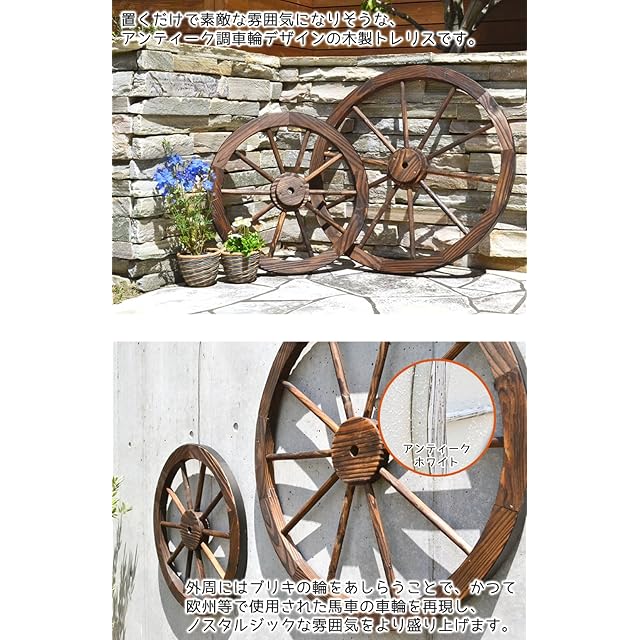 ガーデンガーデン 天然木製 車輪トレリス アンティークホワイト 直径60cm×厚さ35mm アンティーク調仕上げ WT-60WHT