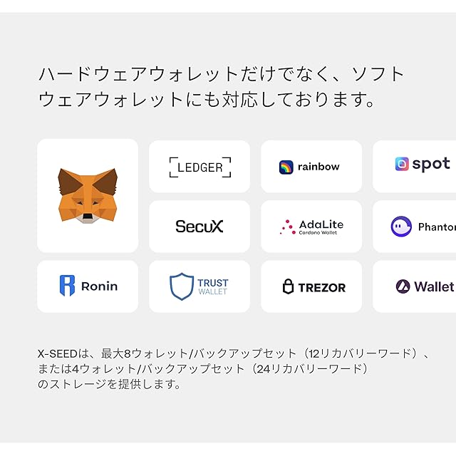 [オールラウンドな互換性] X-SEED PLUSは、標準の12、18、24の回復ワードを使用するソフトウェアまたはハードウェアウォレットに対して、1シートあたり最大24の回復ワードを提供します。 Metamask、Trust Wallet、Exodus、SecuXハードウェアウォレット、Ledger、Trezorなどの財布に適しています。