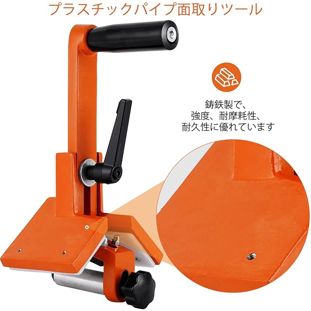 【頑丈で良質】鋳鉄で作れた塩ビパイプ面取りツールです。付属した高速度鋼のブレードは、表面にノンスティック加工が施され、頑丈で耐久性に優れています。
