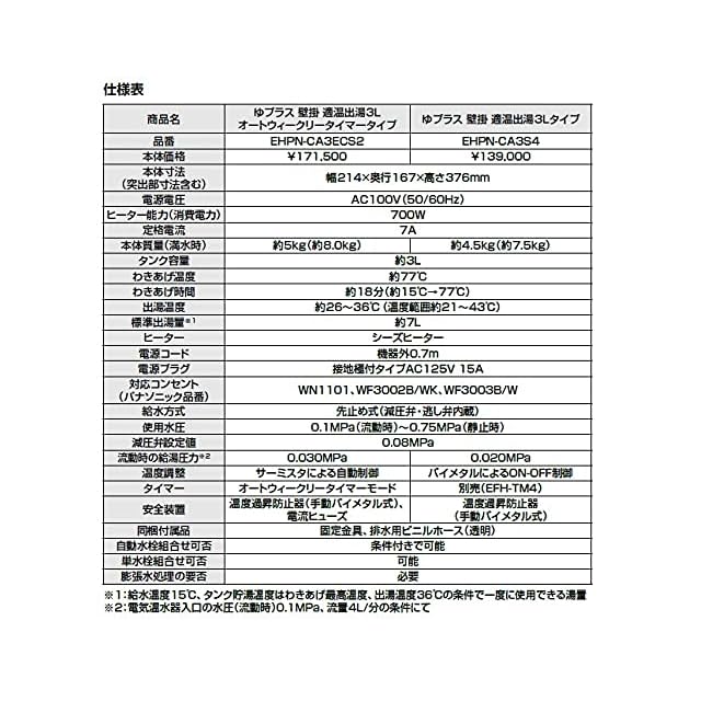 EHPN-CA3S4 INAX・イナックス・LIXIL・リクシル 電気温水器 ゆプラス 壁掛 適温出湯3Lタイプ