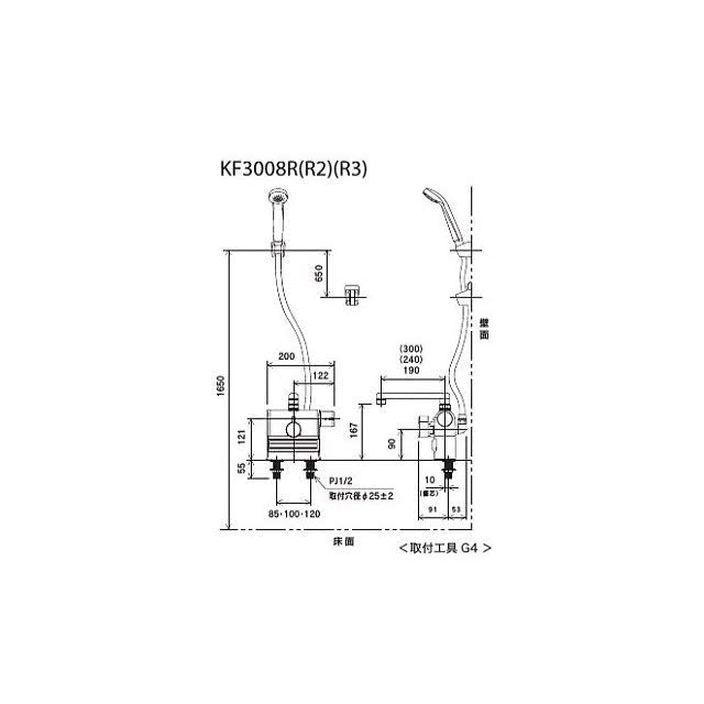 KVK デッキ形サーモスタット式シャワー 右ハンドル仕様 (240mmパイプ付) KF3008RR2 グレー