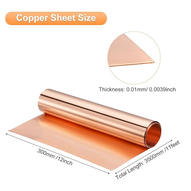 uxcell 銅板ロール 3500mm x 300mm x 0.1mm 99.9%じゅん度の銅ストリップ 銅フラッシングメタルフォイルプレート 電気DIYプロジェクト用(複数サイズ)