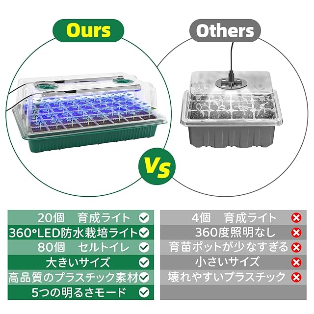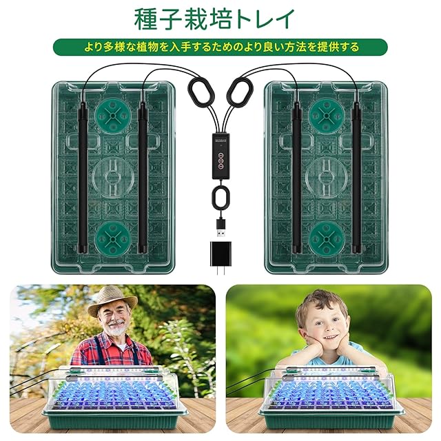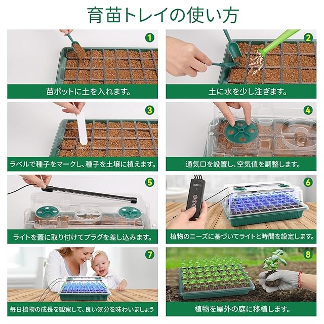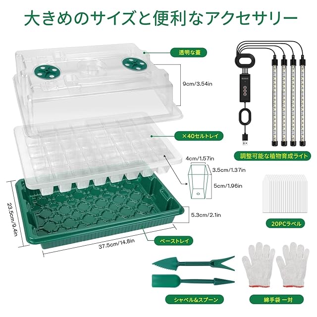 【植物育成ライト付き】当社の育苗箱には、植物成長ランプが搭載されており、光質、光強度、光周期を制御するために、種子の発芽、開花および植物成長を常に最適な成長環境にします。ライトは、太陽光のフルスペクトルのように機能します。迅速、自然成長、豊作を実現することができます。