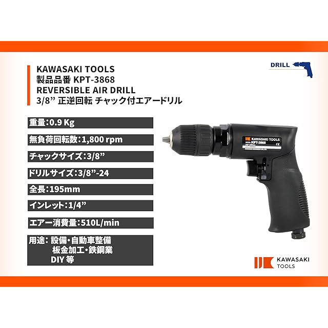 KAWASAKI TOOLS エアードリル3/8" KPT-3868