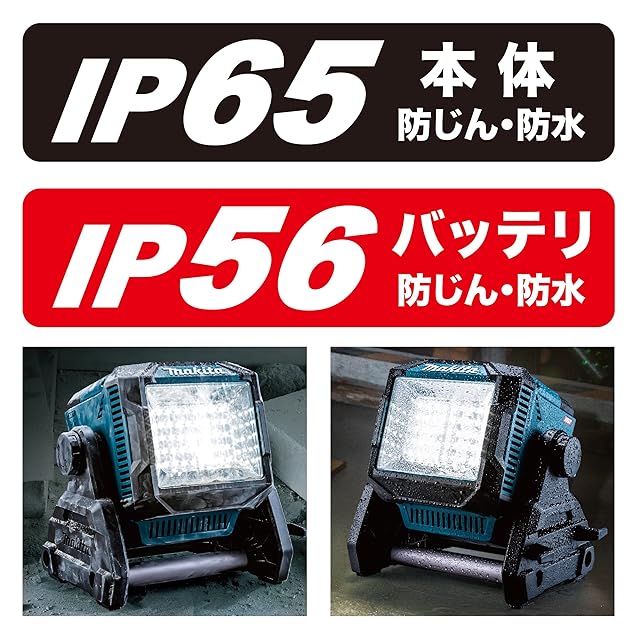 能力LEDライト光源:40灯38W、照度(lx):強/中/弱:2,100/1,000/500、光束(lm)強/中/弱:3,600/1,800/900。使用可能バッテリLi-ion 40Vmaxバッテリ、14.4V・18V(ライトバッテリ除く)。1充電あたりの連続使用時間(目安)<強/中/弱>BL4025・約2時間12分/4時間30分/9時間30分、BL1860B・約2時間42分/5時間30分/12時間