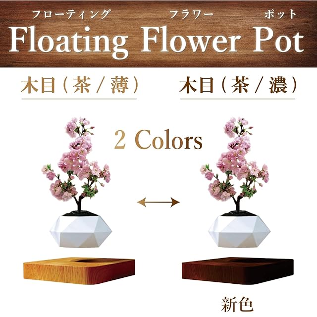浮く植木鉢 台座カラー 木目調 ブラウン 濃茶色/Floating Flowerpot フローティング フラワーポット 磁気浮上 植木鉢 浮遊 プランター 盆栽鉢
