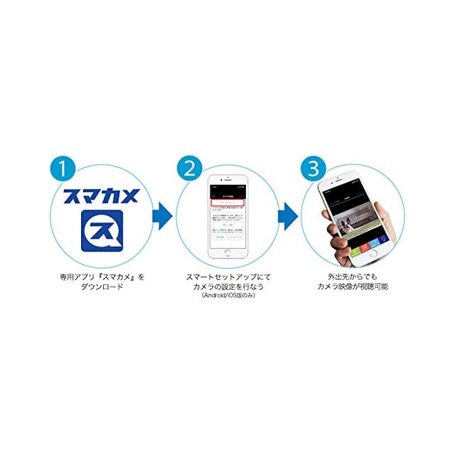 3ステップで接続がカンタン、専用アプリで映像がいつでも見れます。