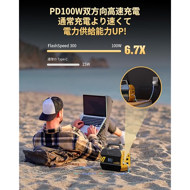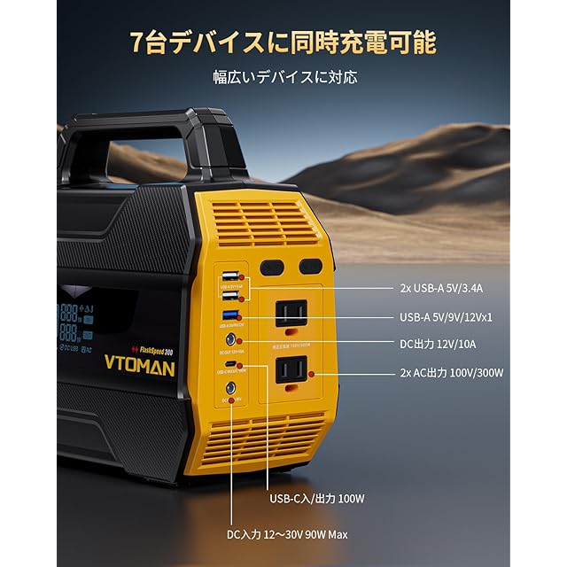 VTOMAN FlashSpeed 300 ポータブル電源 小型 230Wh 大容量 軽量 リン酸鉄 バッテリー 定格出力300W PD100W出力 リン酸鉄リチウムイオン 電池 コンパクト 静音設計 長寿命 BMS電池保護 パススルー機能 7つ出力ポート モバイルバッテリー コンパクト 純正弦波 AC100V 車中泊 キャンプ 持ち運び ソーラー充電 停電対策 防災対策