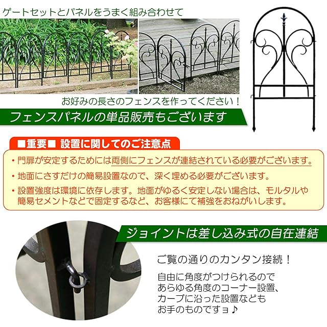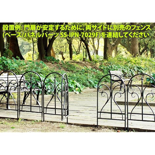 【ご注意】●門扉が安定するためには両サイドに別売のフェンス(SS-IPN-7029F-WHT)が連結されている必要があります。<br>●簡易設置型のため、強度については設置環境に依存します。ポストを深く差し込む、フェンスをコの字型/L字型に設置したりモルタル等で固定するなど、状況に応じて適宜補強をお願いします。<br>●フェンスには物をひっかけたり、もたれ掛からないで下さい。転倒の恐れがあります。</b>