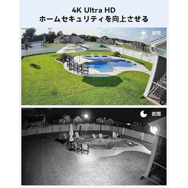 【800万高画質&逆光補正機能&2重灯付き】①4K Poeカメラは800万画素(4K·3840*2160)で画質抜群!人の顔や車の尾号などの細部まではっきり認識しでき、低画素のカメラを比べるとより良い高清なHD撮影を提供します。②逆光補正機能付きので、複雑で可変な色温度環境に応じて色を自動的に調整可能、光度を調節し、黒白バランスがもっと良くになる、どんな天気でも高鮮明な映像を撮影しできでます。③2重ライトが付いているので、白色光ライトや赤外線ライトで夜間の鮮明な画像を撮影出来ます。デフォルトの2重灯警戒昼夜モードでは、周囲が暗いときに赤外線ライトが点灯し、カメラが人体検出をトリガすると、カメラは白色光ライトモードに切り替わり、警告効果とより鮮明な画面を提供できます。