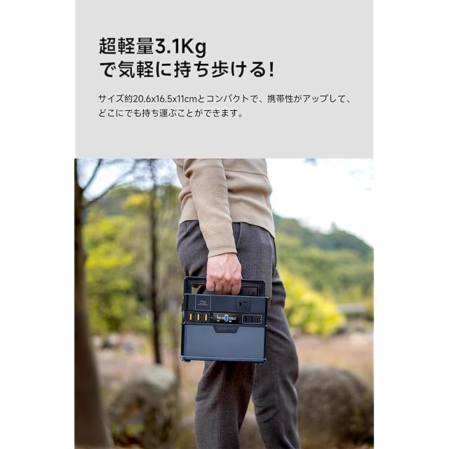 ★【市販超小型軽量、最高のコンパクトを実現】これまでの大容量ポータブル電源は多くが5~7kgの重さなのに対し、ALLPOWERS S300 PLUSポータブルバッテリーは高密度リチウムイ蓄電池を使うことで重さわずか3.1kgと超軽量、サイズも20.6x16.5x11cmとコンパクトで、耐用性、安全性、携帯性を飛躍的にアップさせました。