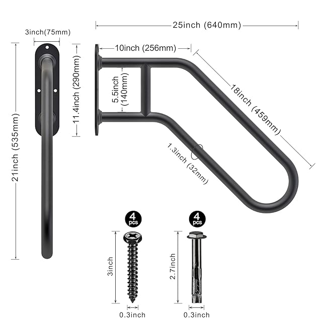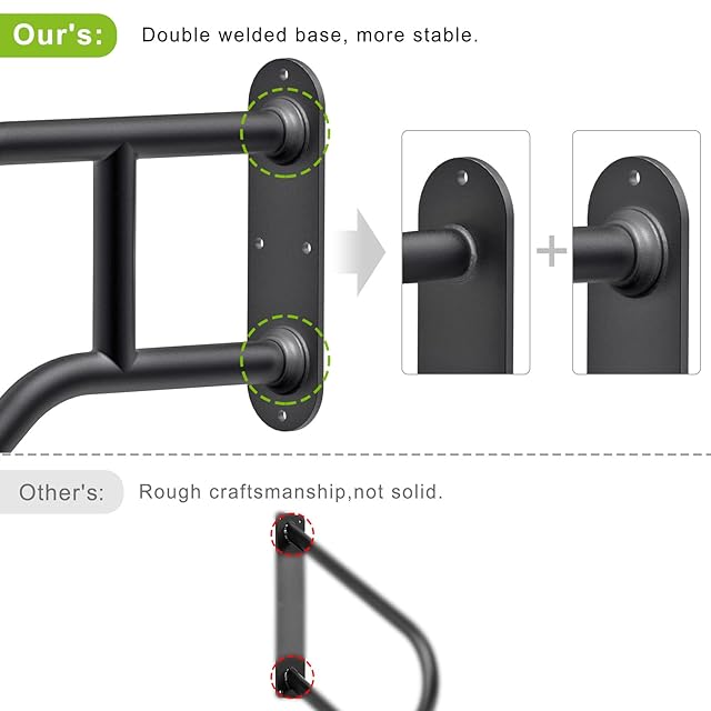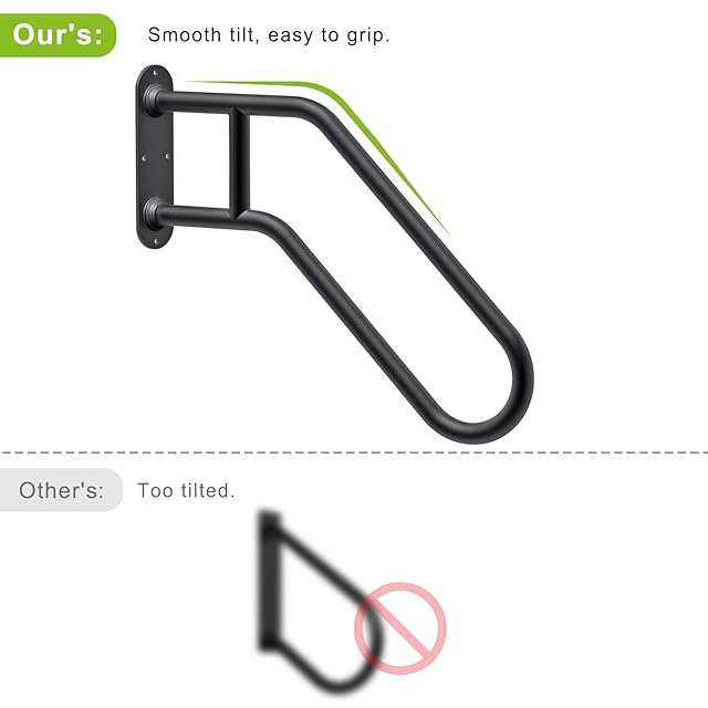 【2段階手すりサポート】直径1.3インチのチューブのU字型フォームは、ほとんどの人のハンドグリップに適しています。 2本のチューブ間の垂直方向の間隔は5.5インチで、2段階の手すりサポートを提供し、さまざまな身長の人々により多くの愛を提供します。高齢者、子供、障害者、愛する人に最適です。