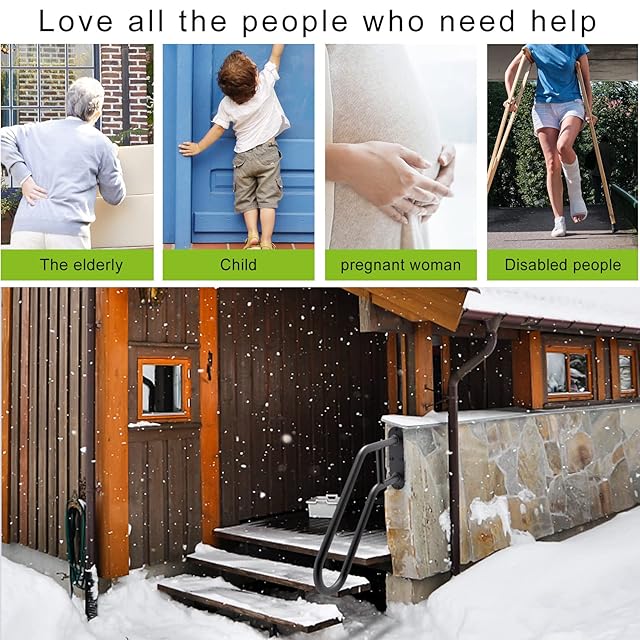 【人間化された階段の手すり】高さのベースから10インチのストレートバーがあり、そこから下向きに45°で約18インチ、水平の長さは25インチ、人間味のあるデザインで、1~3段の階段をサポートします。 滑り止め手すりの表面は滑らかで、滑りにくく、お手入れが簡単です。