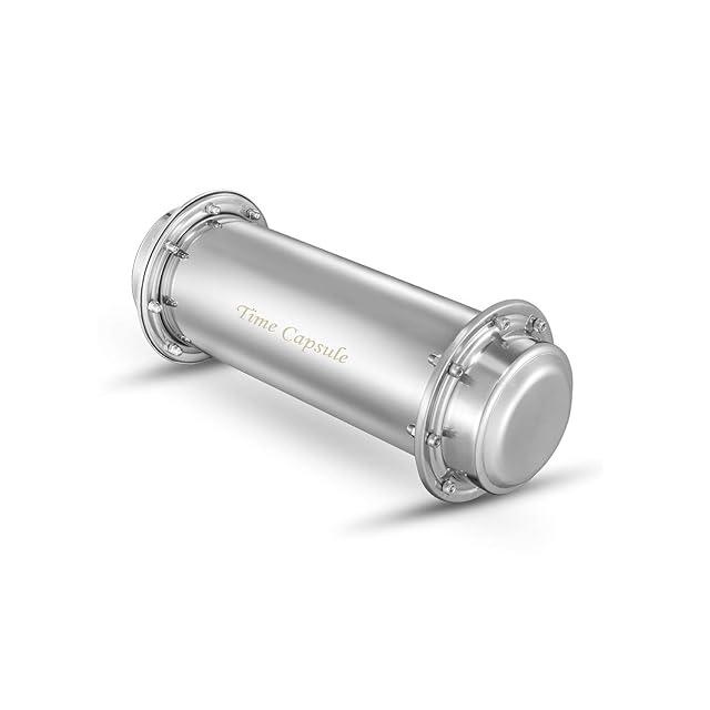 本物のステンレススチール製のタイムカプセルは、直径4インチ、高さ7.6インチ (外側寸法)。 光沢仕上げ。 DVD、CDメディアのケース、ポスター、小さな写真 (巻いた場合は大きいもの) に収まります。 このタイムカプセルは安全に埋めることができます。 すべての指示に従ってください。