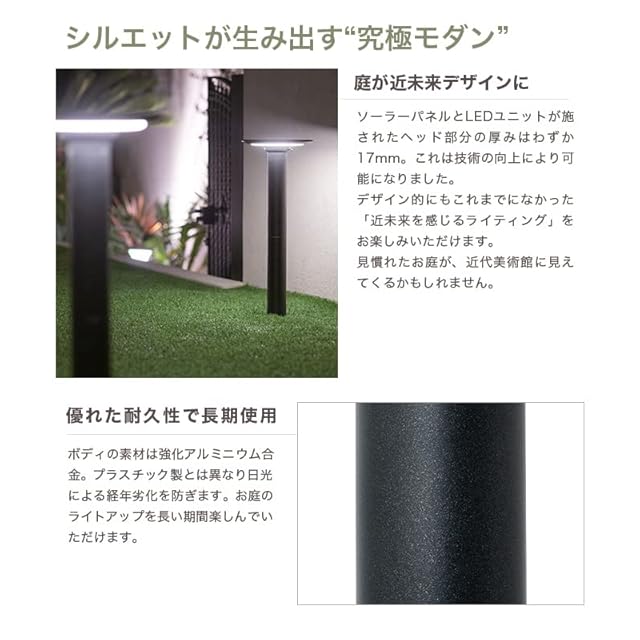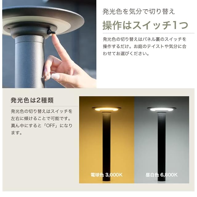 HAPPYJOINT ルナシア リオ ソーラーライト 屋外 防水 IP65 ポール型 高さ58cm 2色切替 長時間点灯