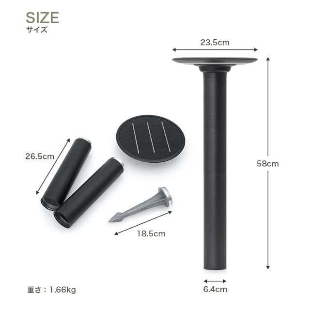 ✅【サイズ・重量】ライト本体 幅23.5*奥行き23.5*高さ58cm、パイル長さ18.5cm、ポール径 6.4cm / 重量1.66kg