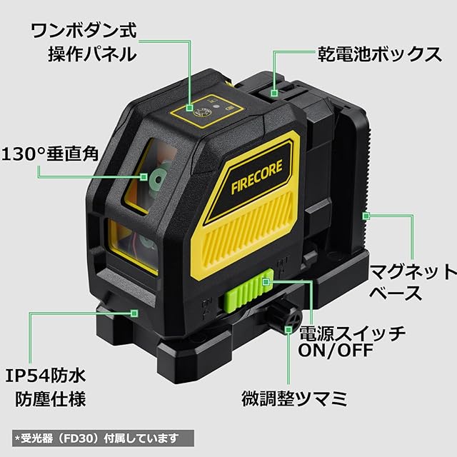 ✅「パッケージ内容と2年間のメーカー保証」1xF114Gレーザー墨出し器、1xL型マグネットホルダー、1x受光器、1x受光器ホルダー、1x 収納布ケース、3x 単三形アルカリ乾電池、2x 単四形アルカリ乾電池、1x日本語ユーザーマニュアル。2年間のメーカー保証なので、お客様の問題や懸念事項を解決できればと考えております。お客様のご満足は何より大切です。返品・修理にはこのFirecore出品者に送信してお問い合わせください。問題の解決に努めてまいります。
