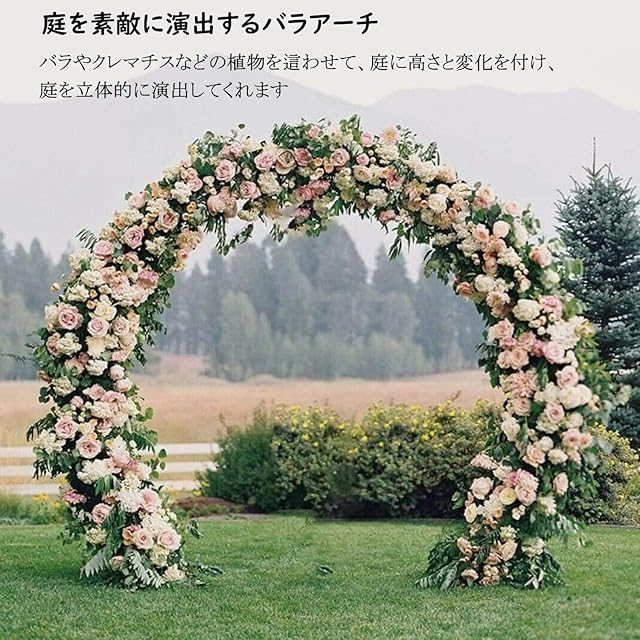 【幅広く使えるアーチ】無駄のないシンプルなデザインの鉄製アーチで、植物の美しさを引き立てや誘引もしやすいです。バラやクレマチスなどのつる性植物を這わせることはもちろん、パーティーや結婚式や開店式のバルーンアーチや、生花店の入り口の飾りなどとしても活用できます