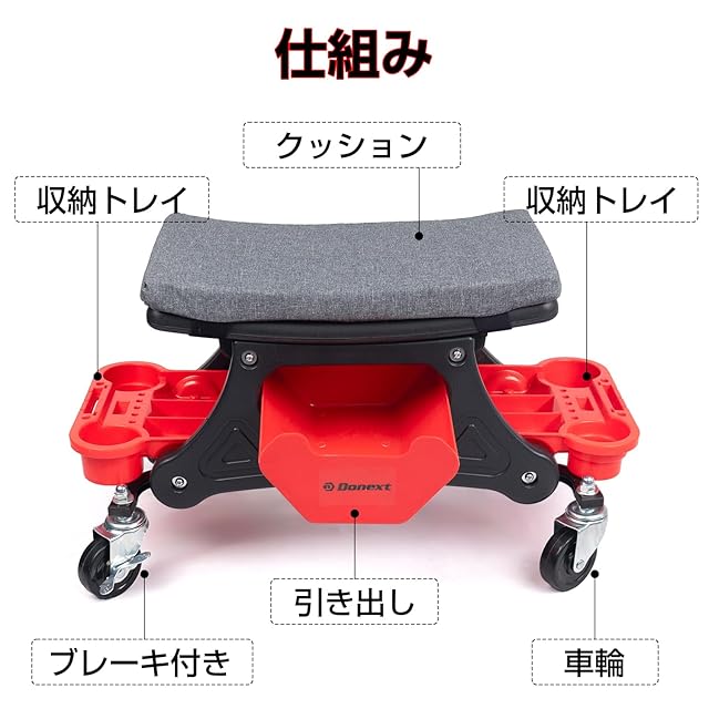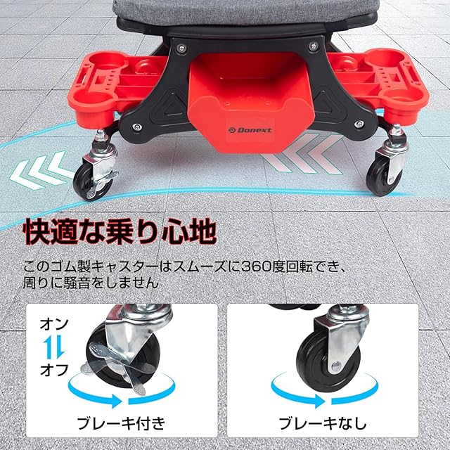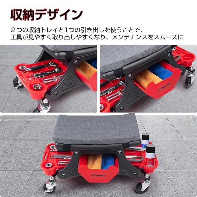 Donext メカニックシート ローラーシート 作業椅子 耐荷重150kg トレイ付き マット付き ブレーキ付きキャスター 360°回転 ワーキングチェア ツールチェア 洗車椅子 工具カート 工具入れ 収納