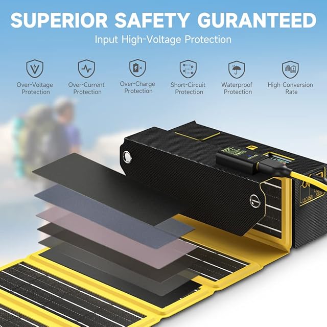【驚くほど頑丈】丈夫なポリエステル布地と高耐久性のPETポリマーのソーラーパネルを採用しており、どんな天候でも耐えられるような頑丈な設計です。