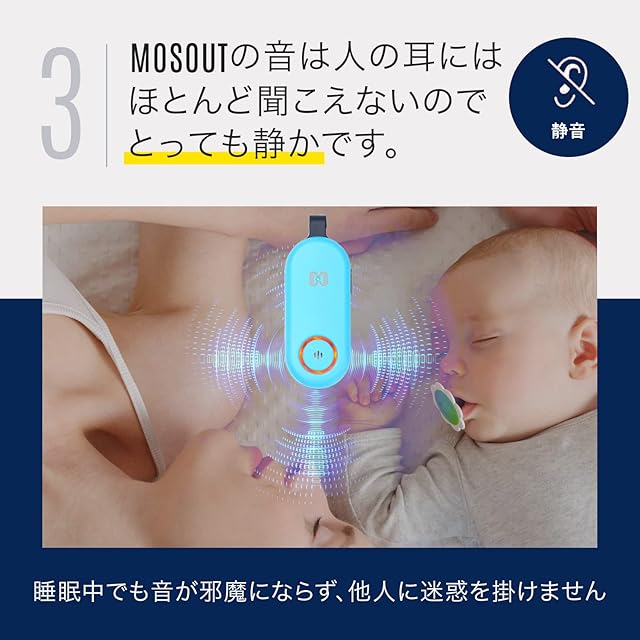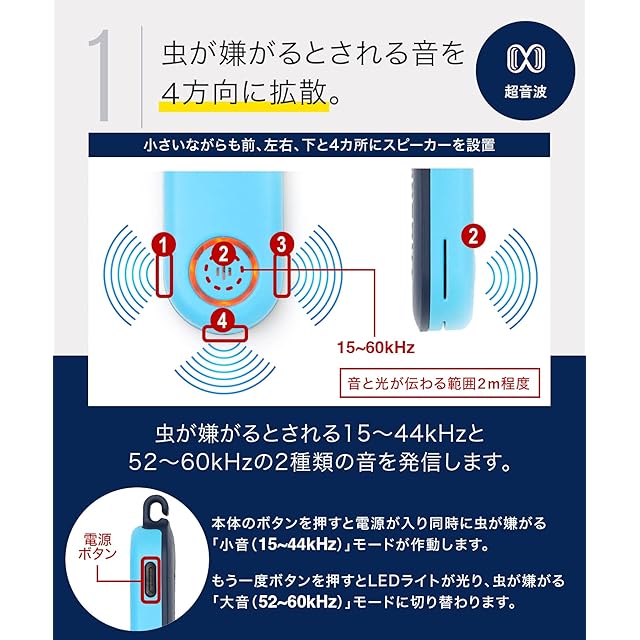 【蚊や害虫が嫌がる2種類の音を発信】蚊や害虫が嫌がるとされる15~44kHzと52~60kHzの2種類の音を発信します。音は人の耳にはほとんど聞こえないのでとっても静かなので睡眠中でも音が邪魔にならず、図書館で使っても他人に迷惑を掛けません。