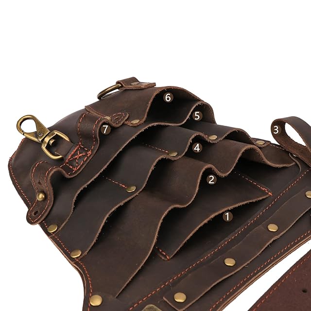 【腰袋】サイズの異なる複数のポケットがあり、さまざまなツールをうまく収納できます。工具やネジ、クギなどの資材を腰に下げておくための収納袋です。