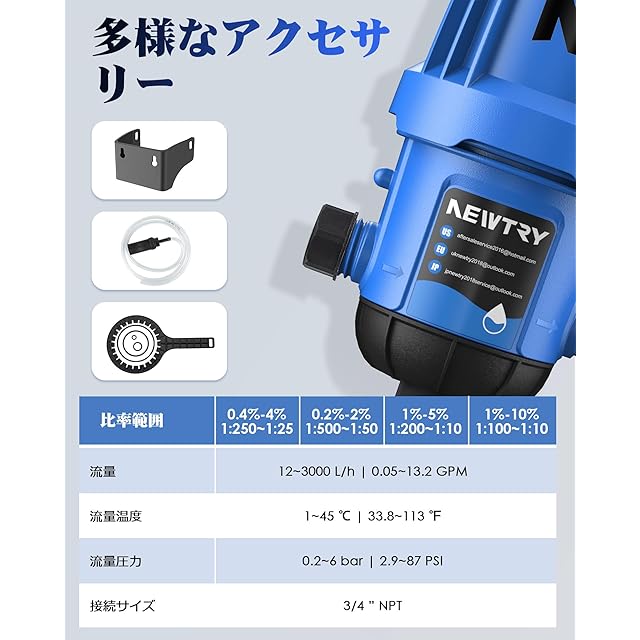 NEWTRY 液肥混入器 0.4-4% 薬注ポンプ 比例ポンプ 点滴灌漑用肥料インジェクター 調節可能な水動力を与えられた投薬ポンプ 3/4"NPT 花卉園芸 車両洗浄 家畜養殖 工業衛生 自動式 家庭用 業務用