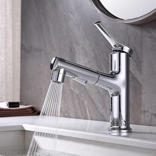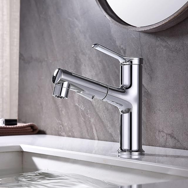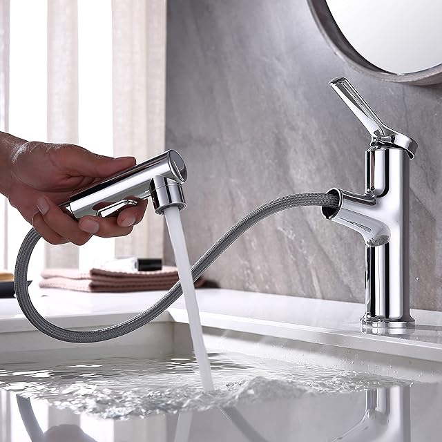 UMANYI 洗面混合水栓 洗面台蛇口 シングルレバー混合栓 洗面 シャワー水栓 ワンホール混合栓 シャワーホース引き出し式 整流 シャワー 潮吹き切り替え可能 MPPO05