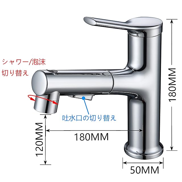 素材:洗面混合栓の本体は真鍮で、シャワーヘッドはABS素材です。サテンメッキ工芸なので、防錆と耐久性が良いです。