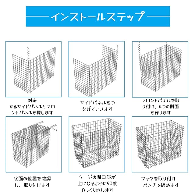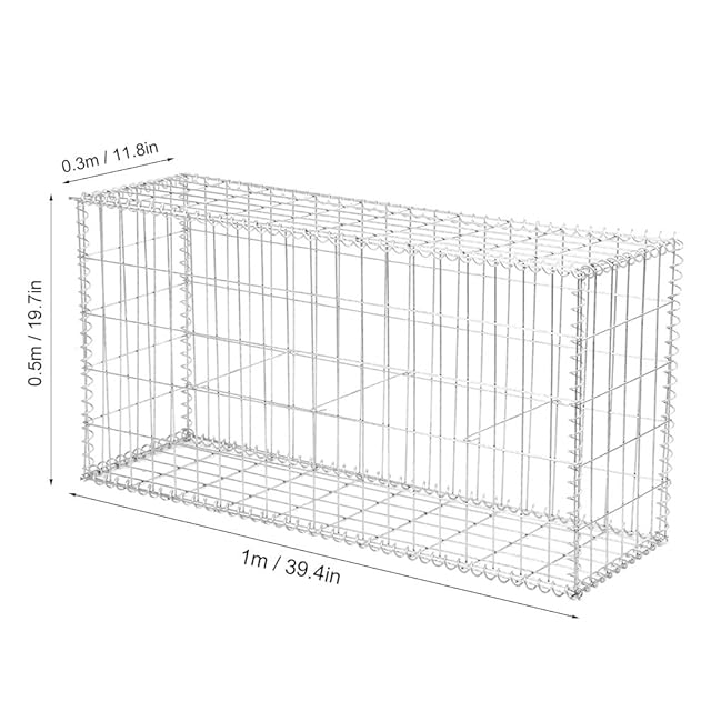 蛇籠バスケット、ガビオン ワイヤーメッシュ、1x0.5x0.3m溶接亜鉛メッキ鋼蛇籠プランターバスケットガーデンランドスケープフェンシング用、 園芸用支柱 ワイヤーメッシュ