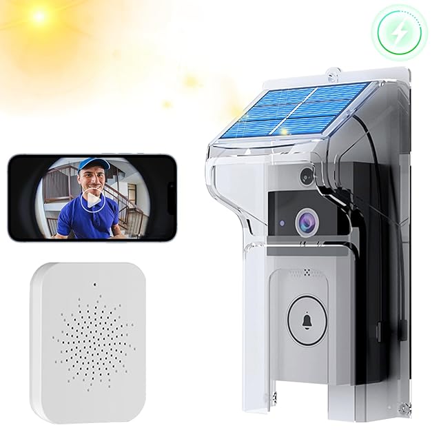 HUAJUN ビデオドアベル ドアホン ワイヤレス インターホン 玄関チャイム テレビドアホン ドアフォン 簡単取付 無線接続 工事不要 カメラ付き 防水防塵 スマホ連動 3600mAh大容量バッテリー 室内通話 防雨カバー付き 屋外 ソーラー充電 変音対応 監視カメラ 双方向通話 赤外線夜視機能 防犯対策 PIR検出 録画機能 長時間連続使用 簡単取付 家族共有 3段階音量 38曲選択可能