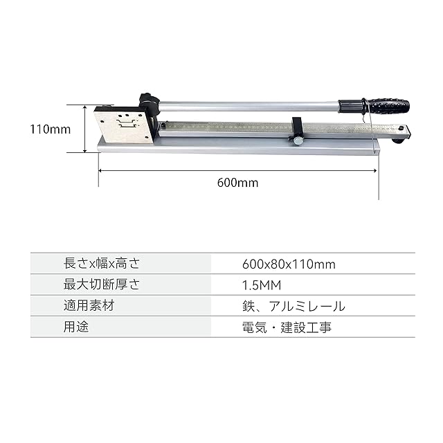 【サイズ】長さ:600mm、幅:80mm、高さ:110mm、最大切断厚さは1.5mmを超えない。