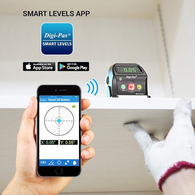 Digi-Pas DWL-90 Pro 2軸スマートキューブレベル 軽量 BLUETOOTH接続で即座に計測角度を表示