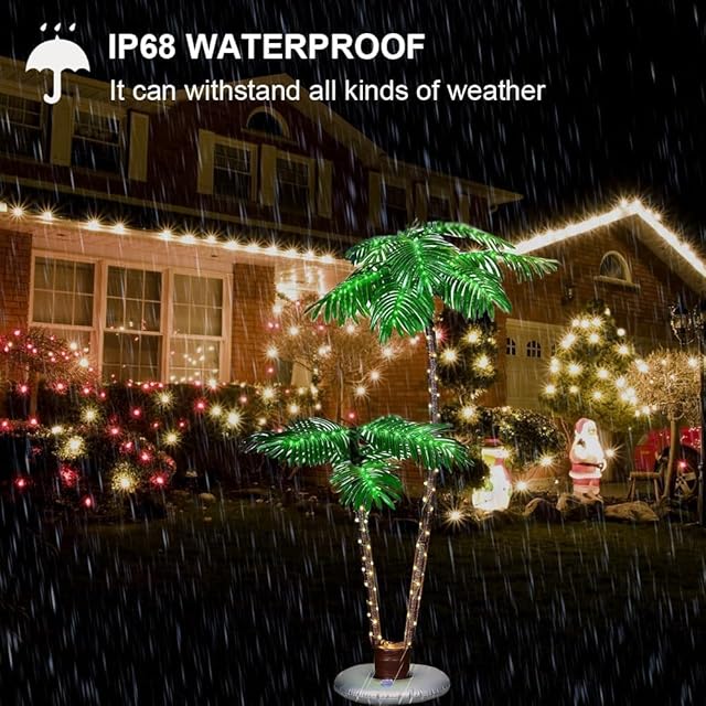 【安全性と省エネ】この模擬ヤシの木は太陽電池式で、昼間に充電して、夜間に自動的に点灯します、ソーラーパネルはUSBで充電できます、曇りや雨の日に薄暗い光を心配する必要はありません、一方、この人工木のライトは防水で、屋内でも屋外でも飾ることができます。