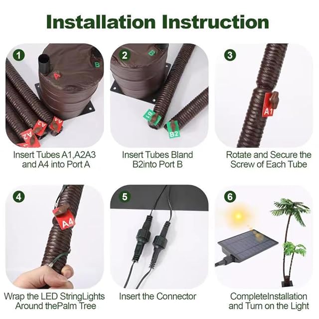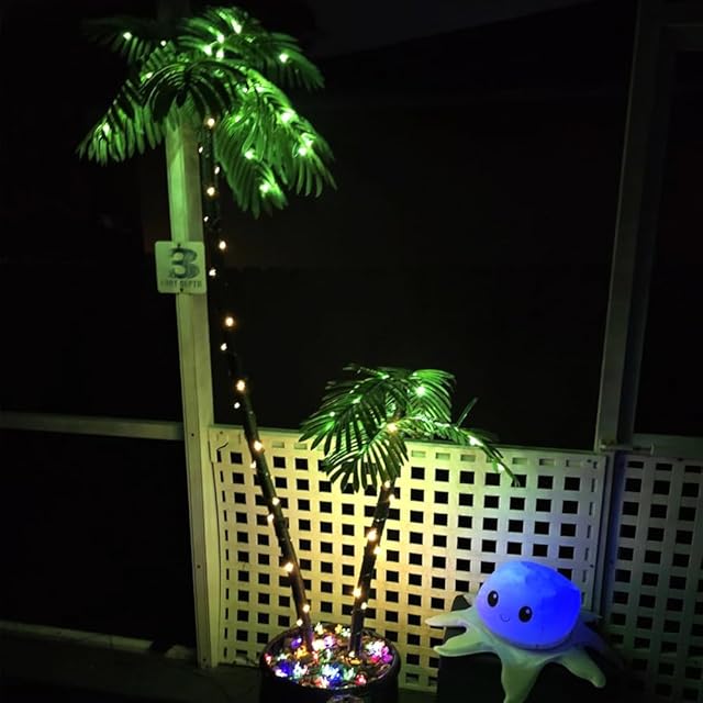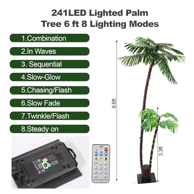 【組み立て簡単】この人工ヤシの木はとても簡単で便利です、底のネジを外して、幹を接続して、補強して、ライトテープを巻くだけです。点灯時、コンビネーションモード、ウェーブインサイドモード、シーケンスモード、SLO-GLOモード、チェイス/フラッシュモード、スローフェードモード、フラッシュフラッシュモード、ステディモードの8つのモードから選択できます。