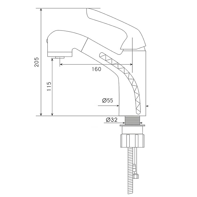 特徴:シングルレバー混合栓です。ホース引き出し可能なので(ホース引き出し長さ=最長80cm)、 使い方も自由自在です。