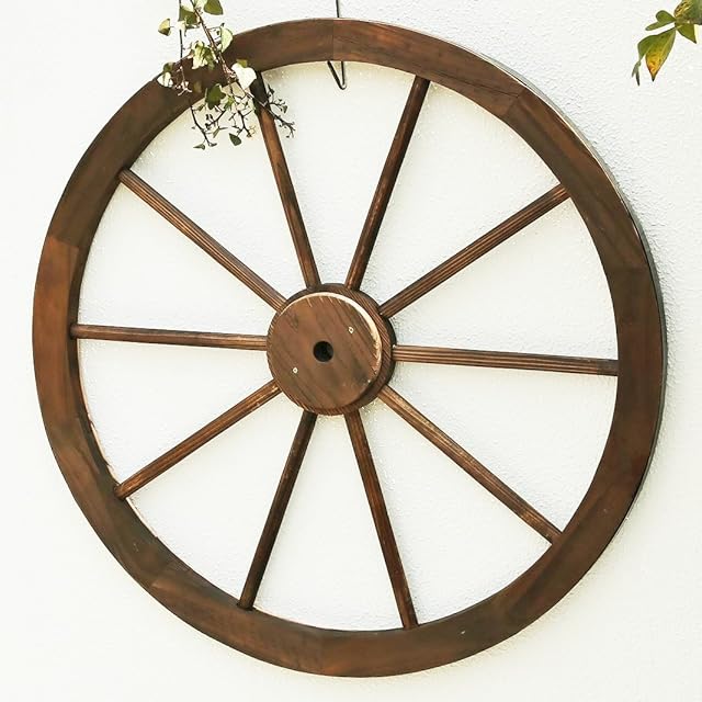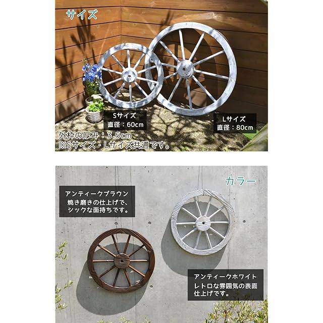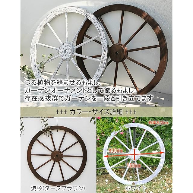 ガーデンガーデン 天然木製 車輪トレリス アンティークブラウン 直径80cm×厚さ35mm 焼き磨き WT-80DBR