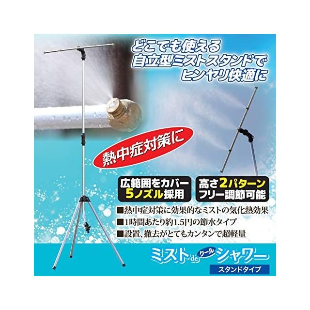 ミストdeクールシャワー スタンドタイプ 5ノズル 屋外用ミストシャワー発生器 通販天国限定部品収納ポーチ付