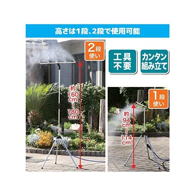 細かな水のミストで 暑い日も涼しくお庭などの作業が楽しめます。