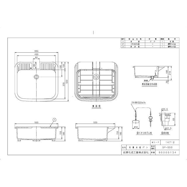 上水道関連製品>水栓柱/水栓パン>水栓パン PP製水栓パン SP SP-550 Mコード:14712 前澤化成工業