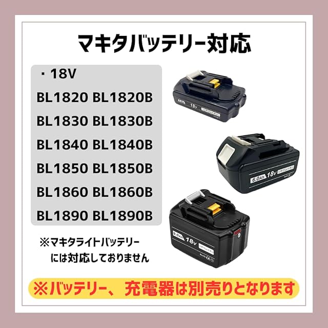 普段お使いのマキタバッテリー 18V が使用できます。