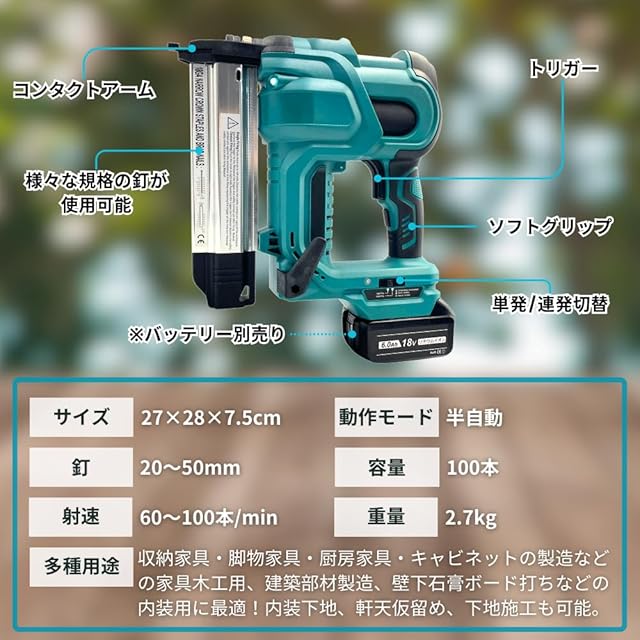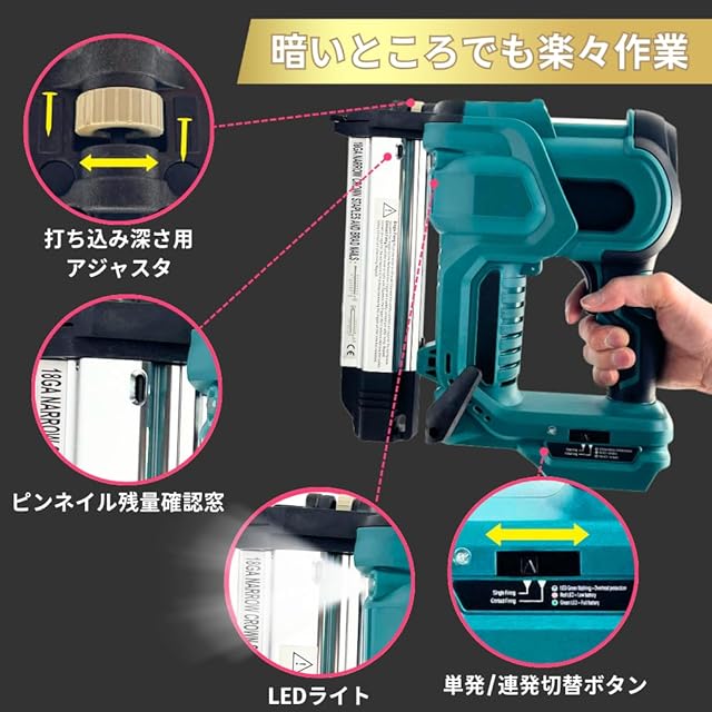 大宝堂 マキタ互換品 ピンタッカー 充電式 エアー 釘打ち機 フィニッシュ ネイラー エアタッカー ピンネイル ステープル 対応 電動 18V 18ボルト コードレス DIY ※ バッテリー 充電器 別売り