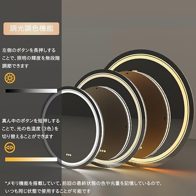 【スイッチ更新・記憶機能】点灯/消灯、色の切り替え、曇らないボタンは別々に設計されているので、1回タッチするだけで点灯/消灯/色変更ができで、使いやすいです。記憶機能もあるので、再点灯時に前の明るさ/発光色が自動的に再開されます