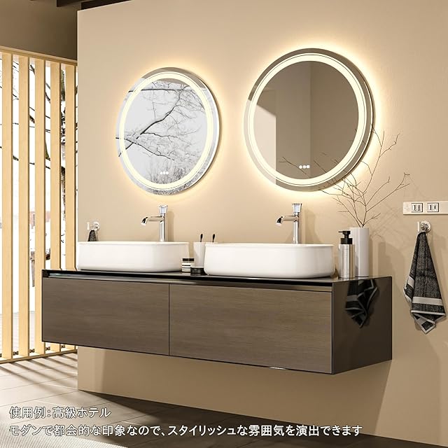 【耐久性に優れる・品質保証】鏡が厚み5mmのガラスを採用、フレームが頑丈なアルミ合金素材を採用し、しっかりした作りで長くお使い頂けます。本製品のLEDは国際防水基準IP65に適合し、お風呂場など湿気の多い場所でも使用することも可能です。【1年安心保証】お客様に安心してご購入頂 けるよう、本製品をご購入後、一年間の品質保証があります。何の品質問題があれば、どうぞこちらにご連絡ください。ぜひ24時間以内に返信いたします