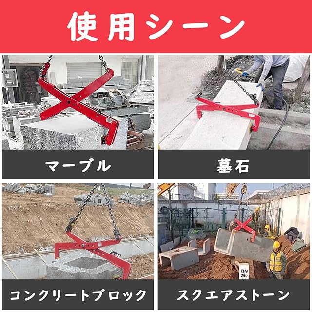 石材クランプ 500KG 石材用クランプ 石吊りクランプ 石材吊り具 開口幅330mm-680mm 吊具 クランプ リフティングクランプ プレートクランプ 吊り具 はさむ つかむ…大谷石 石材 造園石 建築用石 土木用石 墓石 道路脇の石の取り扱いと設置クランプ、持ち上げ重量 輸送用石材クランプ、吊りトング、太チェーンタイプ、簡単操作 (300-510(mm) 耐荷重400kg)