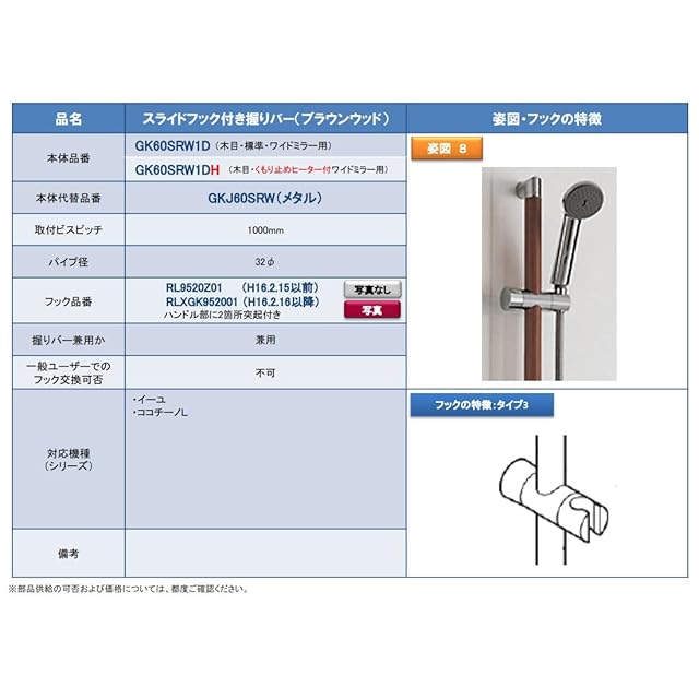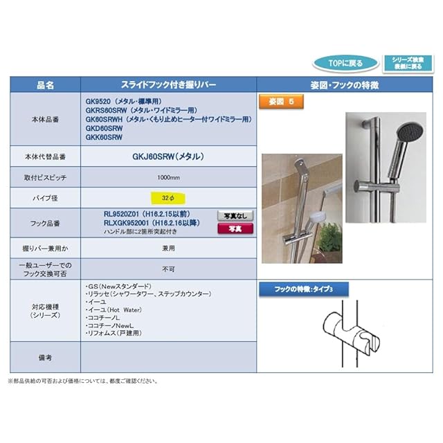 【 Φ32mm用! 】特殊寸法 ナショナルNational用・松下電工など互換対応可 シャワーヘッド ストッパー スライドフック 径32mmスライドバー用
