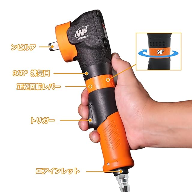 WP WORKPAD エアーインパクトレンチ 71mmショート型 1/2DR 軽量 1.4kg 高トルク シングルハンマー WP01126